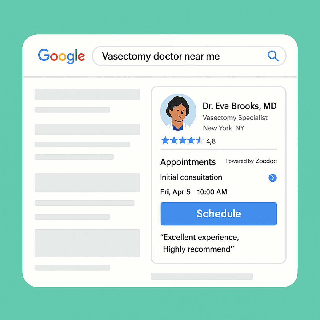 Show up in top search results when patients Google “vasectomy near me.”